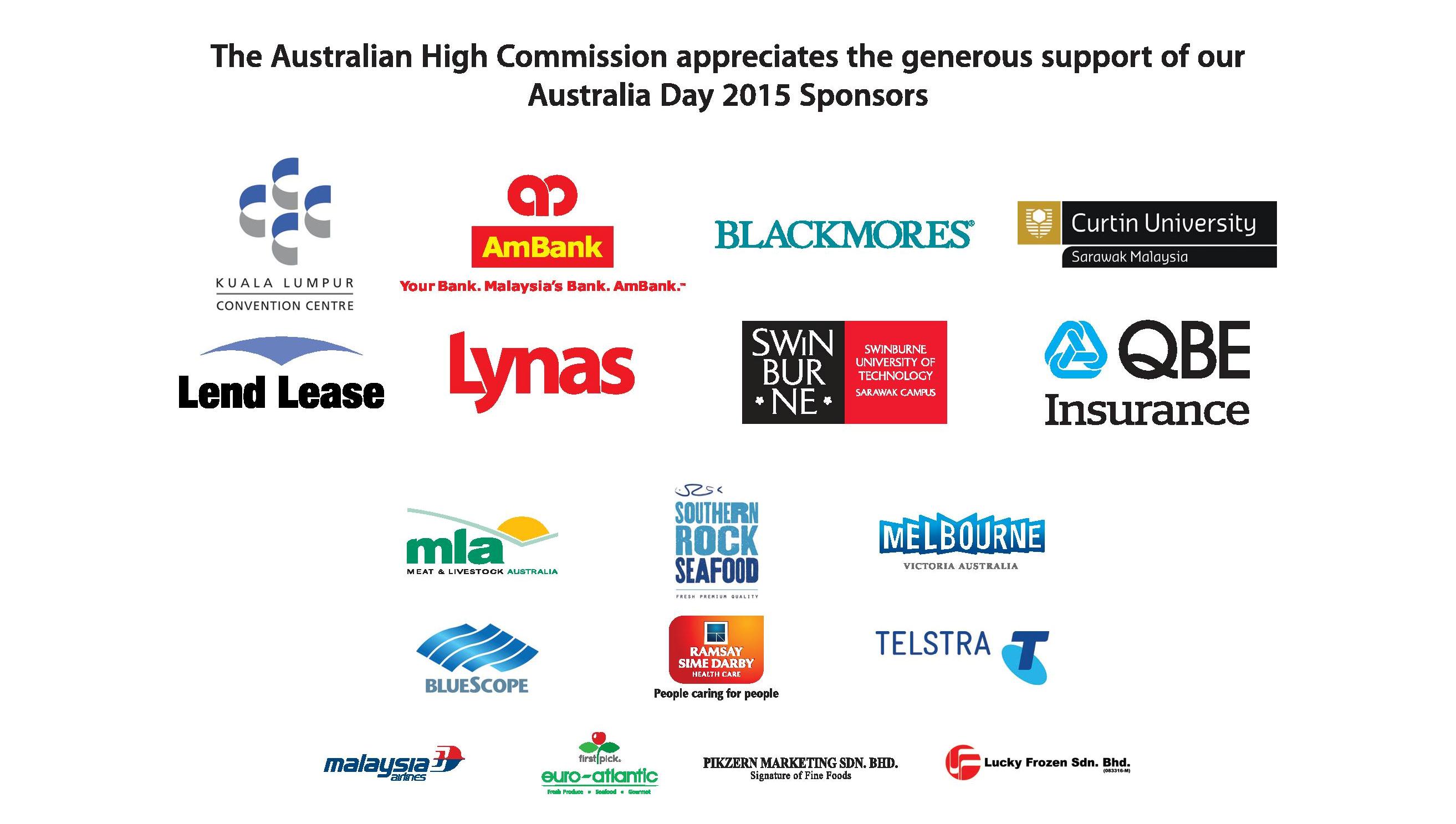Other generous sponsors were Kuala Lumpur Convention Centre, AmBank Group, Blackmores Malaysia, Curtin University, Sarawak Malaysia, Lend Lease Projects (M) Sdn Bhd, Lynas Malaysia Sdn Bhd, Swinburne University of Technology Sarawak Campus, QBE Insurance (Malaysia) Bhd, Malaysia Airlines, Victorian State Government of Australia, NS BlueScope Malaysia Sdn Bhd, Ramsay Sime Darby Health Care, Telstra Malaysia Sdn Bhd, Cantuman, and Orange.