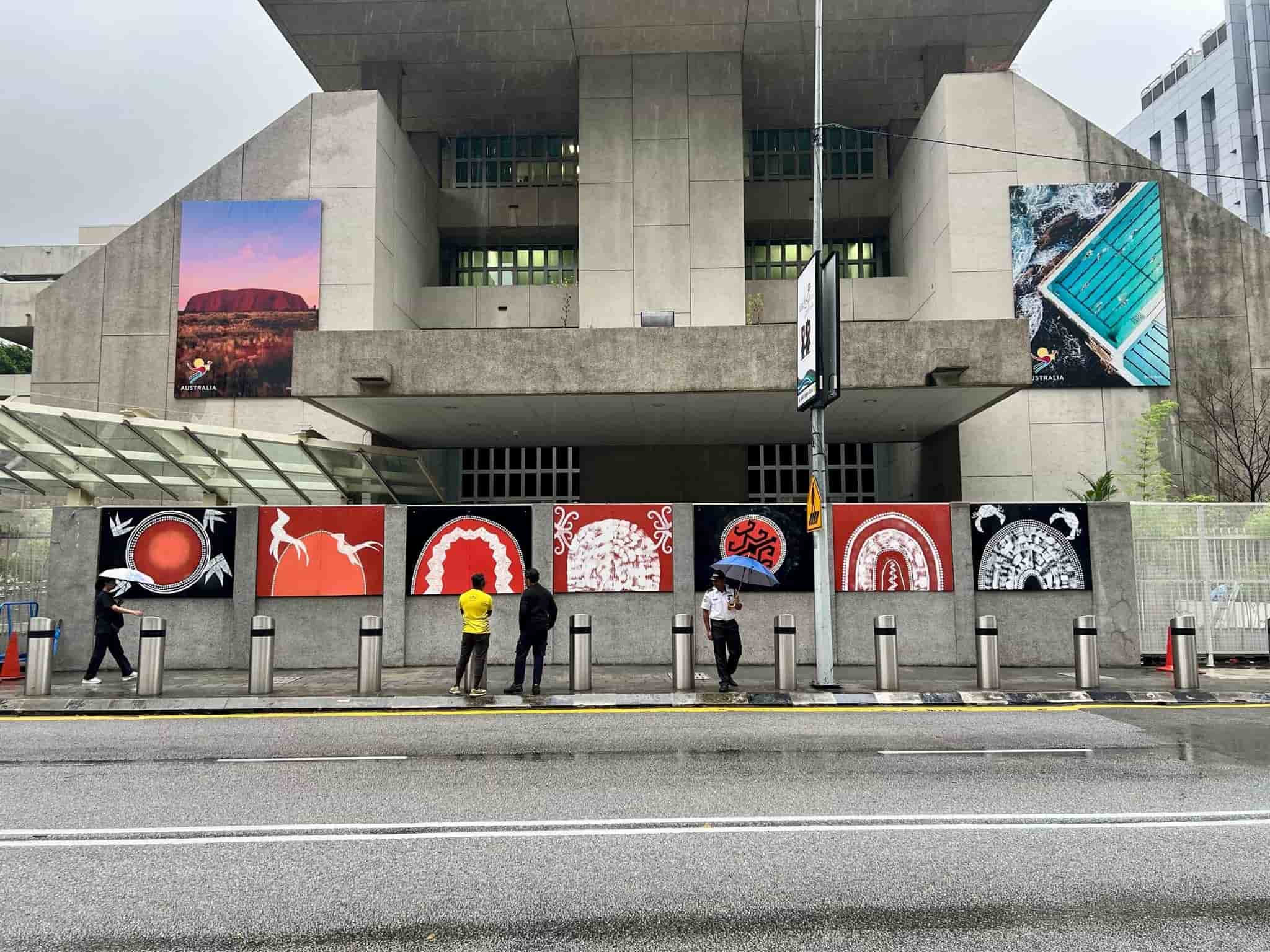In 2025, a First Nations-themed mural was installed on the front fence of the Australian High Commission to celebrate the 70 anniversary of Australia’s diplomatic presence in Malaysia. |