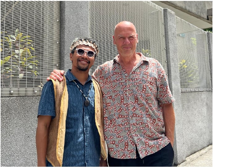 The mural was desgned by Australian Aboriginal artist Professor Wayne Quilliam and Malaysian Orang Asli artist Mr Shaq Koyok, and painted using ochre - naturally occurring pigments from Australia’s outback. The panels are Malaysian-made ECOPEAL boards.